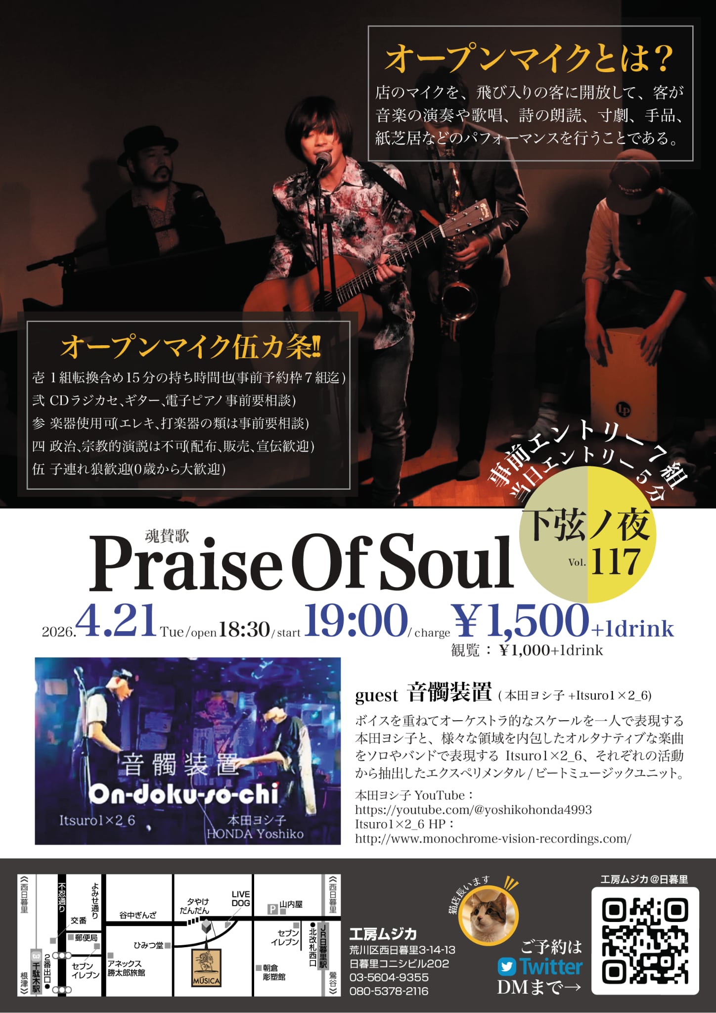 open mic1,500yen+1drink/観覧1,000yen+1drink